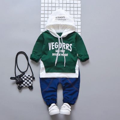 Baby Boys Girls Clothes Letters Cotton Hooded T-Shirt Pants 2 Piece Set For Kids
