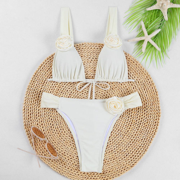New Summer Beach Bikini 3D Three-dimensional Flowers Bikini Set Sexy Solid Color Swimsuit Womens Clothing 88.06