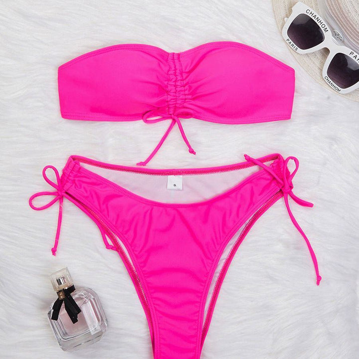 New Drawstring Design Tube Bikini Summer Solid Color Sexy Swimsuit For Beach Party Womens Clothing 81.14