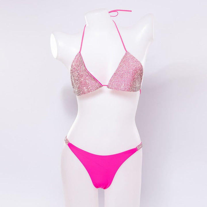 New New Sexy Purple Halter Crystal Diamond Bikini Female Swimsuit Women Swimwear Rhinestone Bikini 94.24