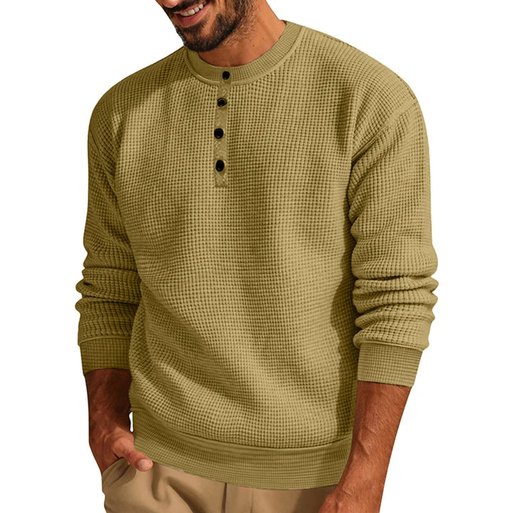 Sold out Leisure Mens Long Sleeve T Shirts Casual Solid Color Waffle Henley Neck Button Pullover Tops Men Clothes Spring Vintage T-shirt 85.36