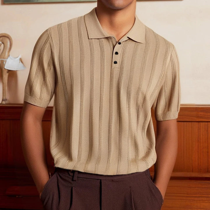 Sold out Stylish Solid Color Mens Striped Knit Tops Spring Summer Casual Buttoned Polo Collar Knitted Polo Shirt For Men Leisure Jumpers 133.40