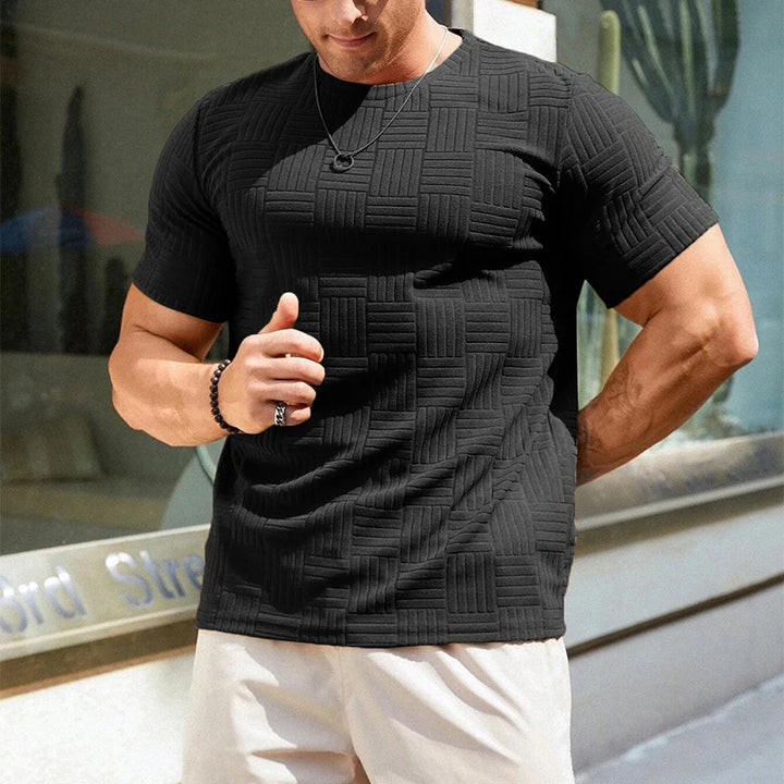 Vintage Plaid Texture Knitted T Shirts Mens Spring Summer Casual O Neck Short Sleeve Knit Tops Stylish Solid Color Men T-shirt 132.60