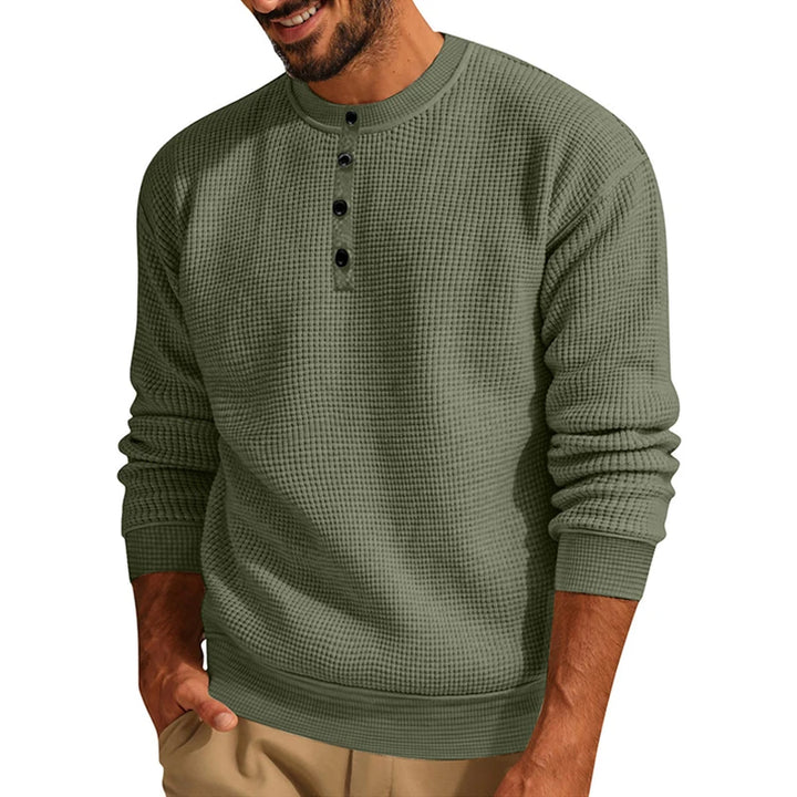 Sold out Leisure Mens Long Sleeve T Shirts Casual Solid Color Waffle Henley Neck Button Pullover Tops Men Clothes Spring Vintage T-shirt 85.36