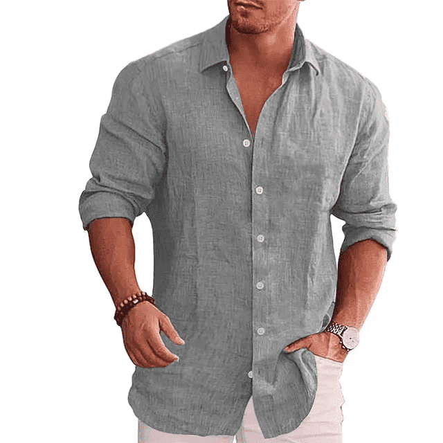 Sale New Cotton Linen Shirts for Men Casual Shirts Lightweight Long Sleeve Henley Beach Shirts Hawaiian T Shirts for Men 64.39 72.98