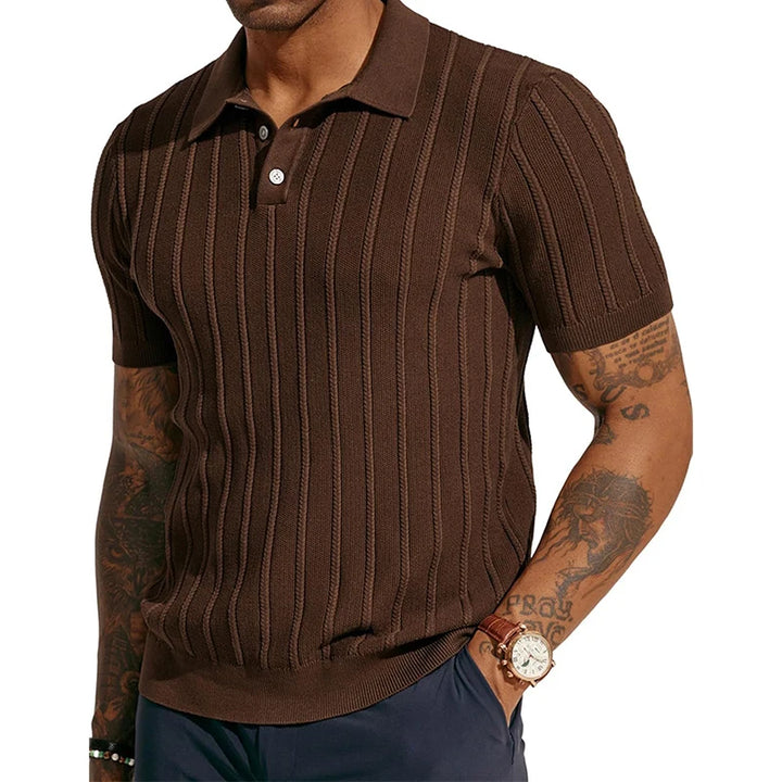 2024 Summer Short Sleeve Casual Polo Shirt Men Knitted Turn-down Collar Buttoned T Shirts Vintage Striped Knitting Solid Polos 153.68