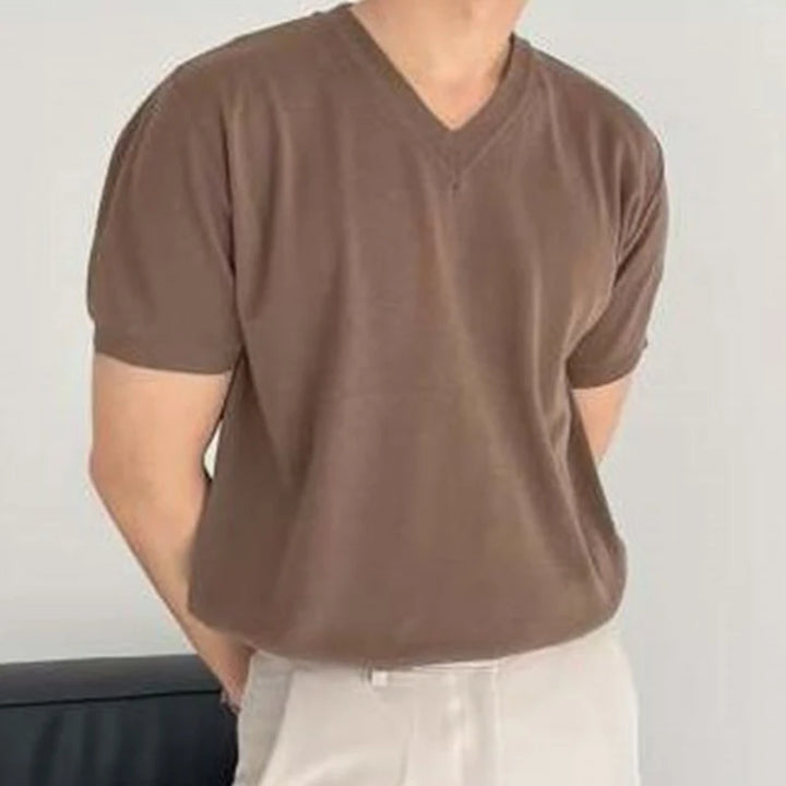 Sold out Streetwear Men Clothing Fashion V Neck T Shirts Knitted Short-sleeved Mens T-shirt Knitwear Summer Casual Solid Color Knit Tops 147.36