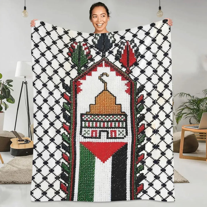 Sale Palestine Flag Blankets Palestinian Map Traditional Tatreez Embroidery Camping Flannel Throw Blanket Warm Soft Bed Bedspread 170.53 289.39