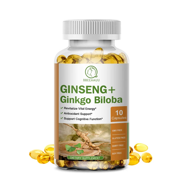 Sale BBEEAAUU Ginseng Ginkgo Biloba Capsules Brain Health Supplements Cognitive Function Memory and Concentration Blood Circulation 10.65 58.40