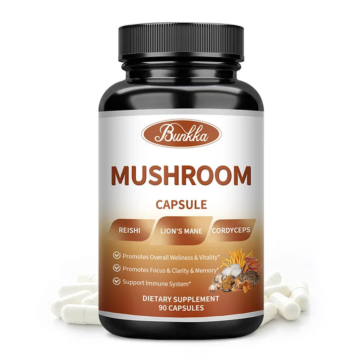 Sale Original Mushroom Complex Capsules with Lions Mane Chaga Cognitive Brain Function Stress Relieves Beauty Health Diet Supplement 63.69 82.57