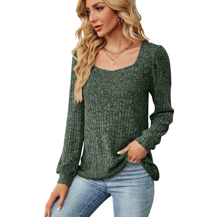 Women's Solid Color Rib Fabric Square Collar Loose Long-sleeved T-shirt Top