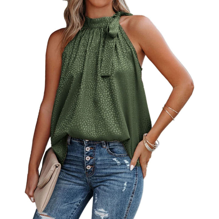 Lantern Sleeve Tied V-neck Loose Casual Top Women