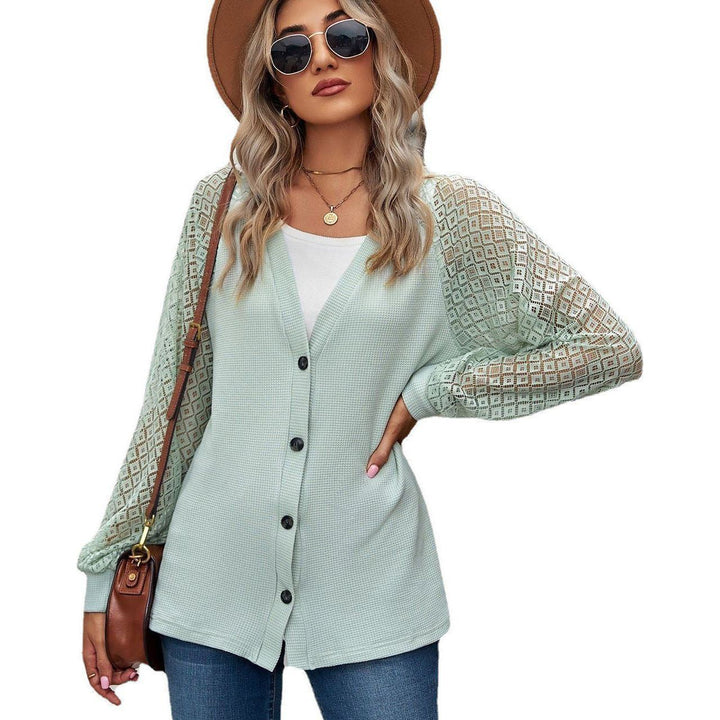 European And American Autumn And Winter Long Sleeve Solid Color Loose Button Lace Stitching Cardigan Top Women 133.91