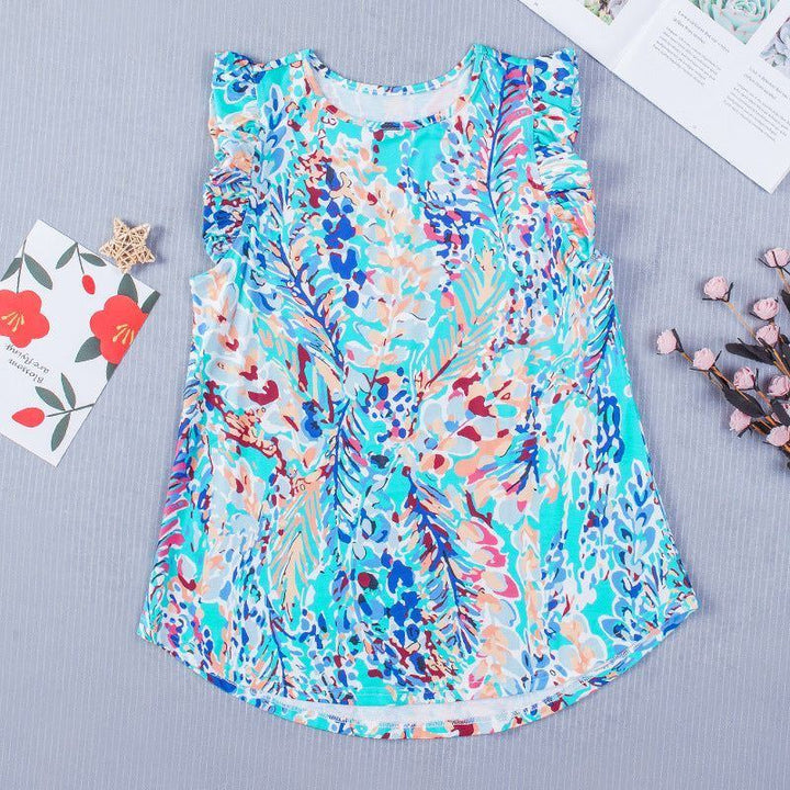 Sleeveless Versatile Top Women's Summer New Loose Printed Fashion Outerwear Chiffon T-shirt Women 58.85
