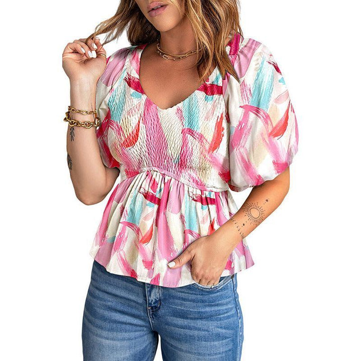 Women's Fashion Casual Jacquard Pleated Square Collar Long Sleeve