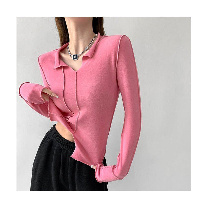 European And American Women's Clothing Solid Color Plus Size Versatile Loose Long Sleeves T-shirt 79.17
