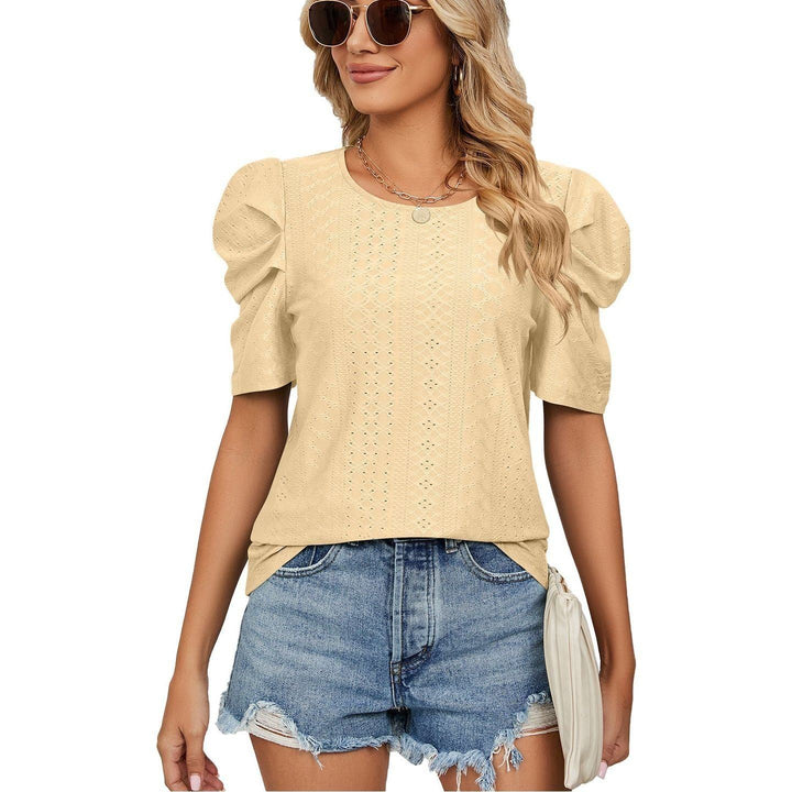 Summer New European And American Women's Clothing Square Neck T-shirt Hole Hollow-out Casual Short Sleeve 57.50