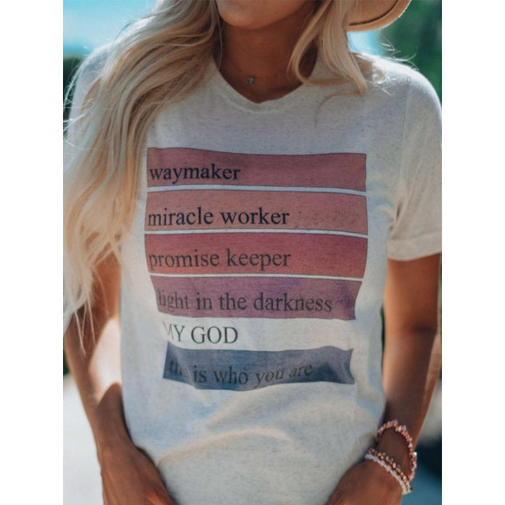 European And American Women's Clothing New Top Loose V-neck Digital Printed Short Sleeve T-shirt 85.50