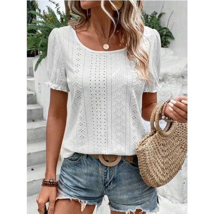 Summer New European And American Women's Clothing Casual V-neck Chiffon Shirt Puffed Sleeves Elegant Clothes 60.00