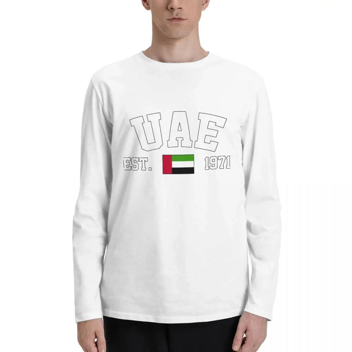 Sold out 100% Cotton United Arab Emirates Flag With EST. Year Long Sleeve Autumn T shirts Men Women Unisex Clothing LS T-Shirt Tops Tees 116.73