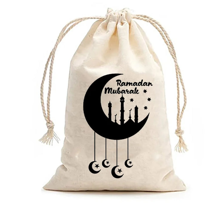 Sale Sold out 12PCS Eid Mubarak Candy Bag Star Moon Canvas Pocket Arabic Islam Muslim Party Gift Bag Ramadan Decoration For Home 4x6 inch 48.48 52.01
