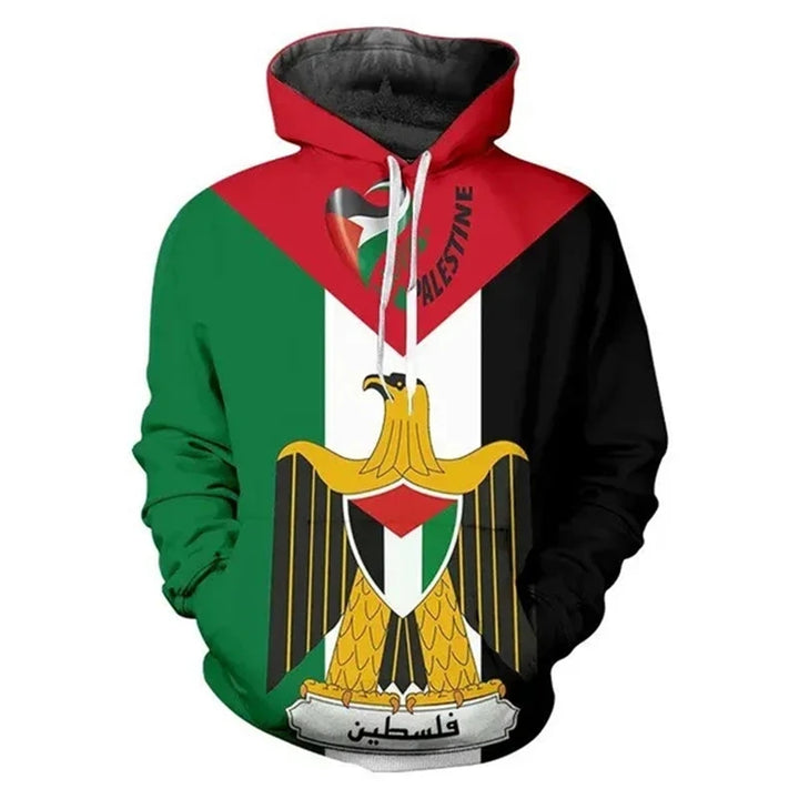 Palestine Sweatshirt 2024 Men's Fashion Palestine Map Flag Hoodie Arabic Traditional Text Graphic Printed Men Pullover Clothing 77.57