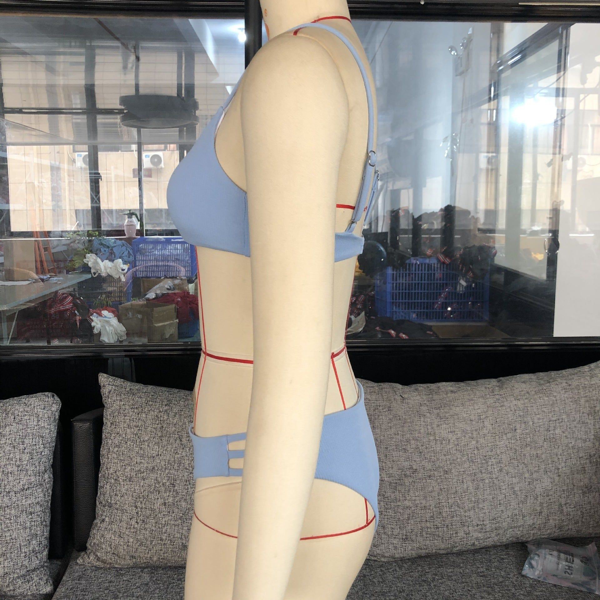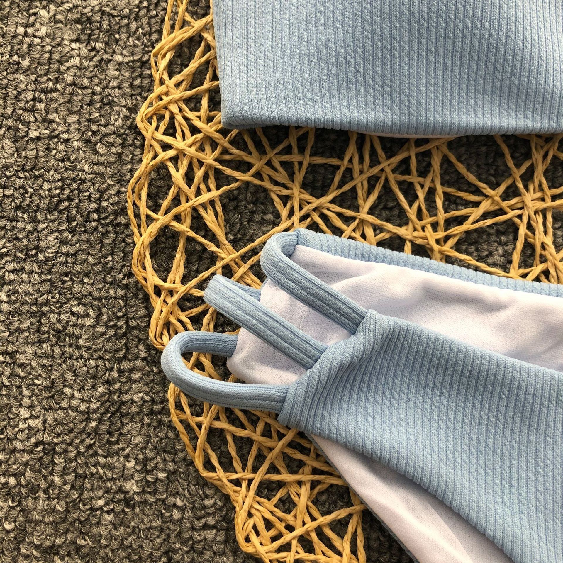 Solid color striped bikini