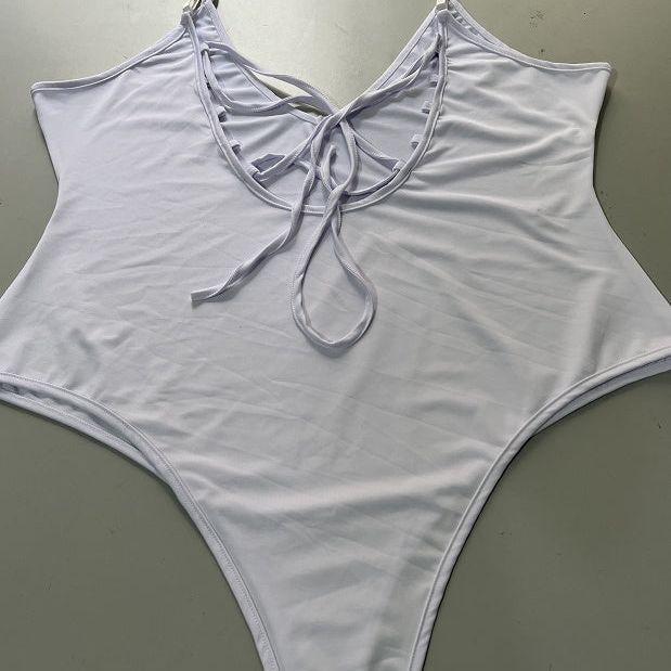 Summer Bikini Backless String Large Size Sexy Solid Color Triangle One-piece Swimsuit Womens Clothing